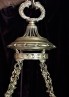 Chunky decorative top loop decending to top canopy a decorative band sits below the canopy with 4 decorative chains flow to meet the s [Read more ...]