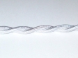 BRAIDED SILK FLEX CHANDELIER CABLE IN BRIGHT SILVER - 2 CORE TWISTED - 0.75MM - QUANTITY 1=1 METRE - OTHER COLOURS AVAILABLE.............................. please note.... 3 core 0.75mm braided and twisted flex = 0.75mm is the innercore - total diameter is approx. 6mm - 6 amp rated... 2 and 3 core 0.50mm braided and twisted flex = 0.50mm is the innercore - total diameter is approx. 5mm - 3 amp rated