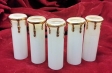 Vintage glass candle tube in white with gold drip, 110 mm high x 29 mm internal width. Your lamp holder will need to be 29mm or under in width for the tube to fit.