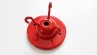 Brass chandelier 3 hook ceiling plate coated in red, 72mm plate width and 42mm height, 2 screw hole fixing 50mm apart, 10mm threaded centre hole, no earth, screws not included