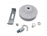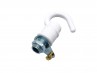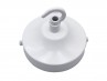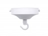 White chandelier ceiling rose for chandeliers with open hook, fixing strap bracket and knurled nuts with earth point on strap bracket.