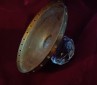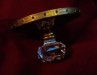 Chandelier finial for bag type chandelier, brass plate with crystal ball insert and 26 pin holes.