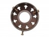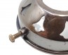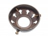 Antique brass effect gallery glass shade holder 28 mm centre hole will fit a B22 bayonet cap lamp holder with shade ring. Width 58mm or 2 and a quarter inches. 26mm depth, 3 screw fittings to secure the shade. Ideal for antique lighting restoration and repair.