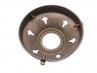 Antique brass effect gallery glass shade holder 28 mm centre hole will fit a B22 bayonet cap lamp holder with shade ring. Width 83mm or 3 and a quarter inches. 34mm depth, 3 screw fittings to secure the shade. Ideal for antique lighting restoration and repair.