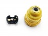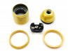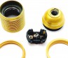 3 PART E27 / ES LAMP HOLDER IN GOLD FINISH - 10 MM SCREW THREAD FIXING - THREADED SKIRT AND SHADE RINGS - 55MM HIGH - 40MM WIDE - LOCKING CAP - NO EARTH - 2 WAY SCREW-IN TERMINALS