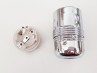 ES E27 Edison screw 3 part bulb/lamp holder with plain skirt, silver effect with 10mm thread fixing with 1mm metric thread. This lamp holder has an internal earth and is designed for 3 core electrical cable, features an internal locking nut.