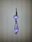 Lilac glass chandelier drop and button with silver coloured bow clip ready to hang 35mm x 13mm without the button and 56 mm high with the button.