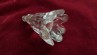 Inside the bell the glass is formed across in a rib pattern so that when viewing the drop from below the petal rim and bell inner resemple a flower head. The waist of the drop is a rib design matching the center of the drop with the crown having a small leaf design that allows the glass loop to protrude imitating a stalk.