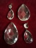Vintage glass chandelier pear drop, cross pattern, 1 top pin hole. Price for drop only