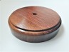 Round wooden ceiling pattress made from Mahogany Hardwood, 10mm centre hole . The total width is 130mm or just short of 5 inches. The depth is 25mm. Varnished